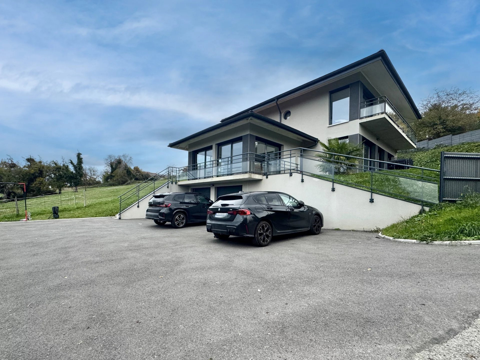 Discover this superb modern 180 sqm villa built in 2018, ideally located in a quiet, residential area of Allinges. It offers spacious rooms, exceptional brightness and an unobstructed view over the fields and Lake Geneva, ideal for a family seeking comfort and serenity.