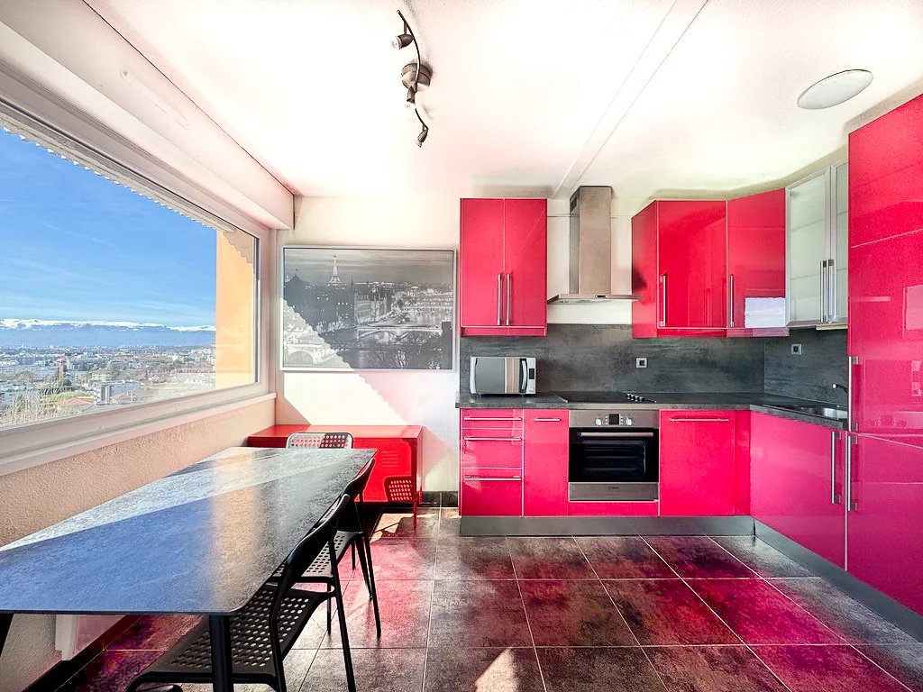Situé au sixième et dernier étage d’une résidence sécurisée par un portail et une clôture, cet appartement de deux pièces se distingue par ses volumes généreux et sa clarté exceptionnelle. La pièce de vie s'ouvre sur un panorama saisissant, offrant une vue imprenable sur la ville, la chaîne des Alpes suisses et les versants du Mont Salève à l'ouest. Les résidents profitent également d'un vaste jardin en copropriété et de facilités de stationnement grâce au parking collectif sécurisé.